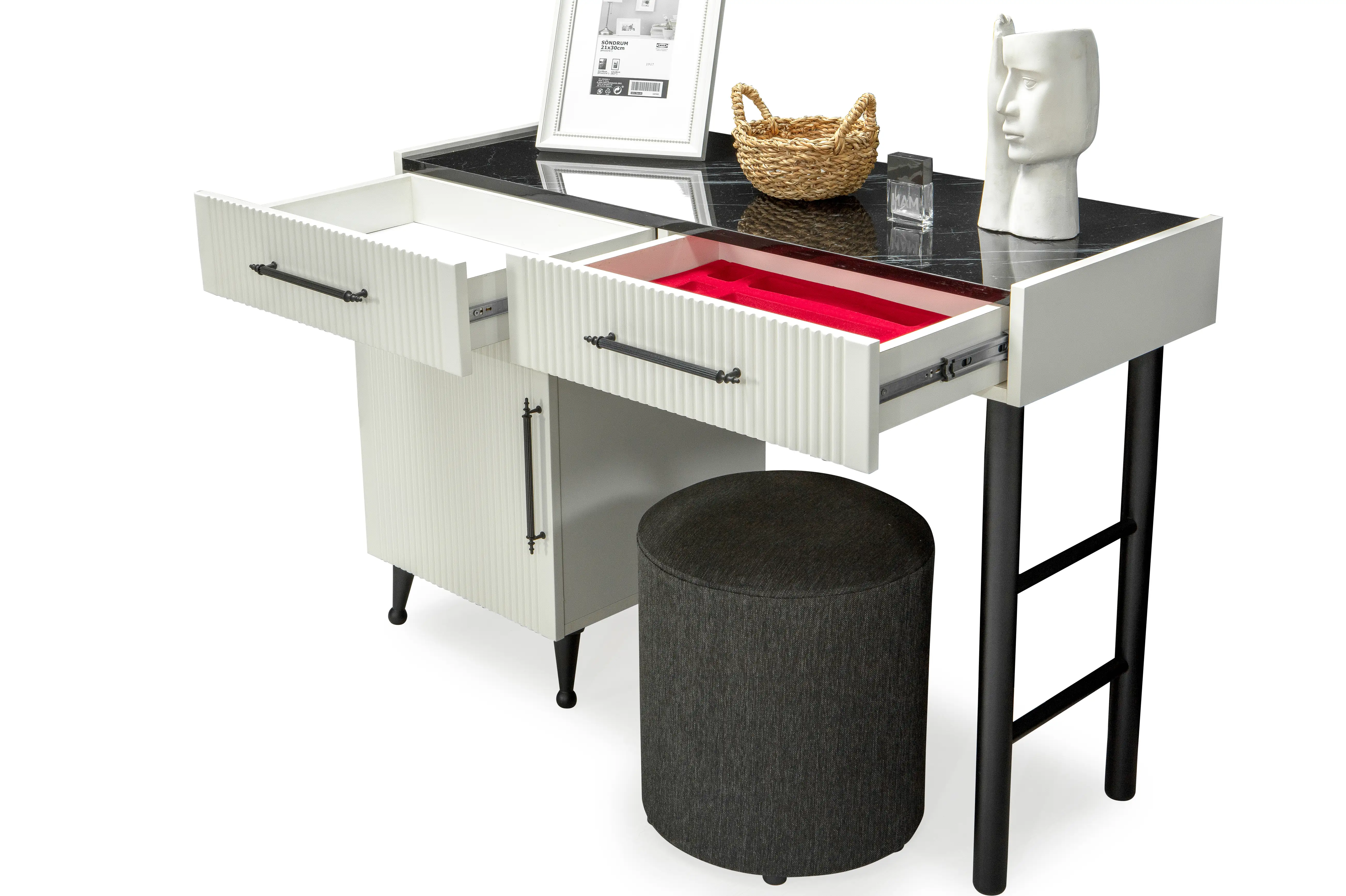 Modern ve asil bir dokunuşu birleştiren bu yatak odası takımı, antrasit tonların ağırlığı ile krem renginin zarafetini buluşturuyor. Füme aynalı şık gardırobu, entegre aydınlatmalı yatak başlığı ve minimalist makyaj masasıyla hem fonksiyonel hem de estetik bir yaşam alanı vadediyor.