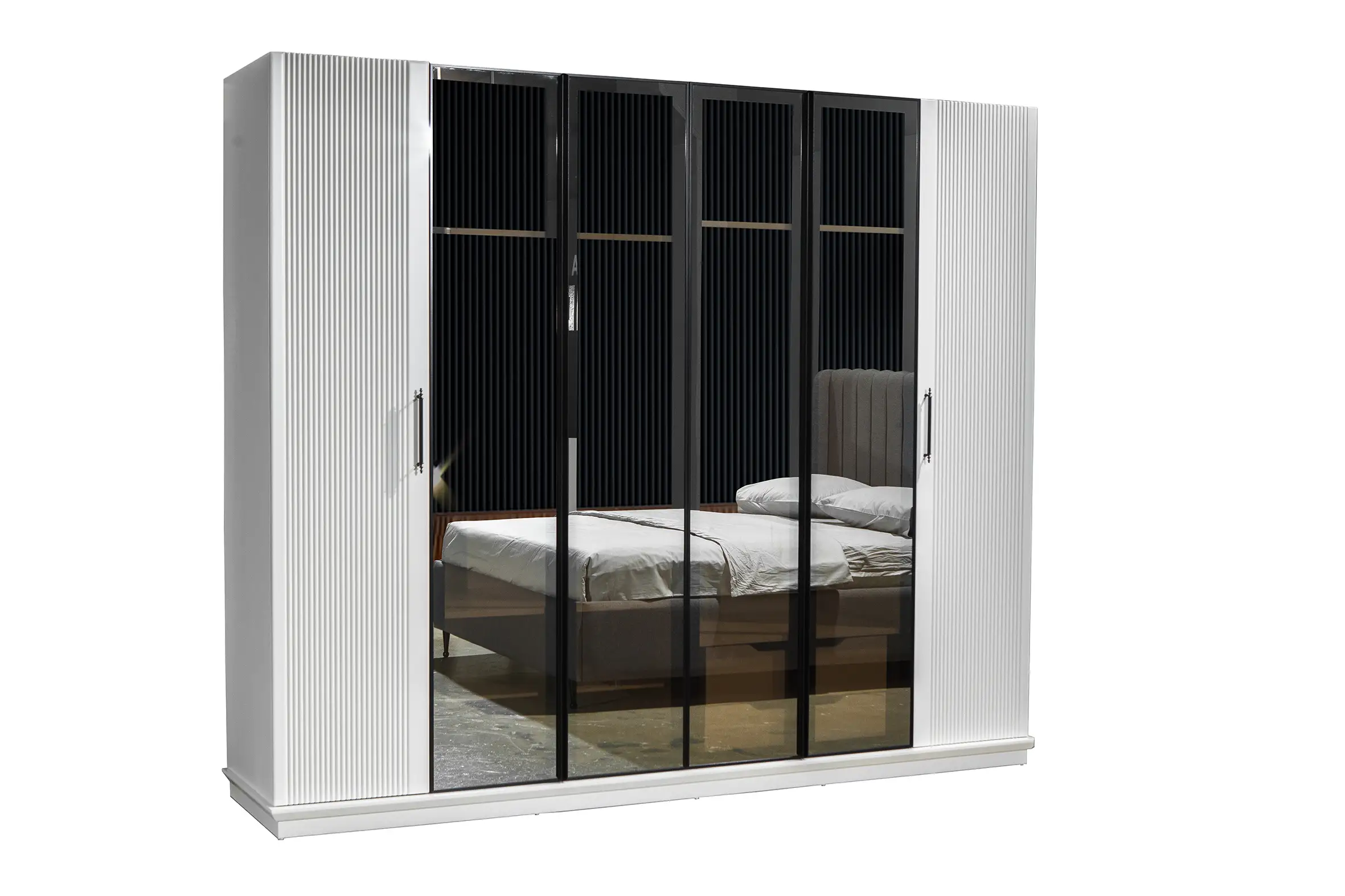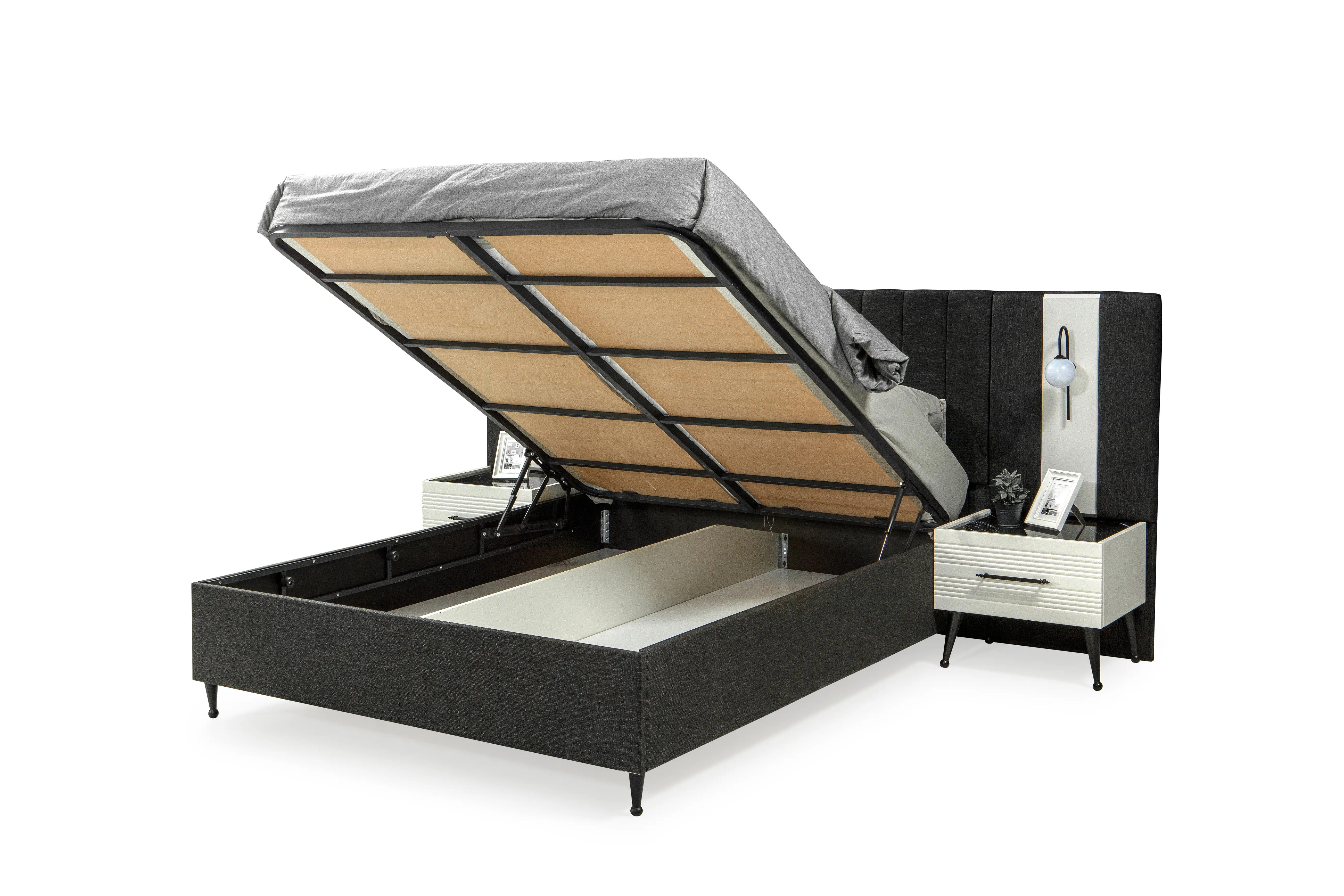 Modern ve asil bir dokunuşu birleştiren bu yatak odası takımı, antrasit tonların ağırlığı ile krem renginin zarafetini buluşturuyor. Füme aynalı şık gardırobu, entegre aydınlatmalı yatak başlığı ve minimalist makyaj masasıyla hem fonksiyonel hem de estetik bir yaşam alanı vadediyor.
