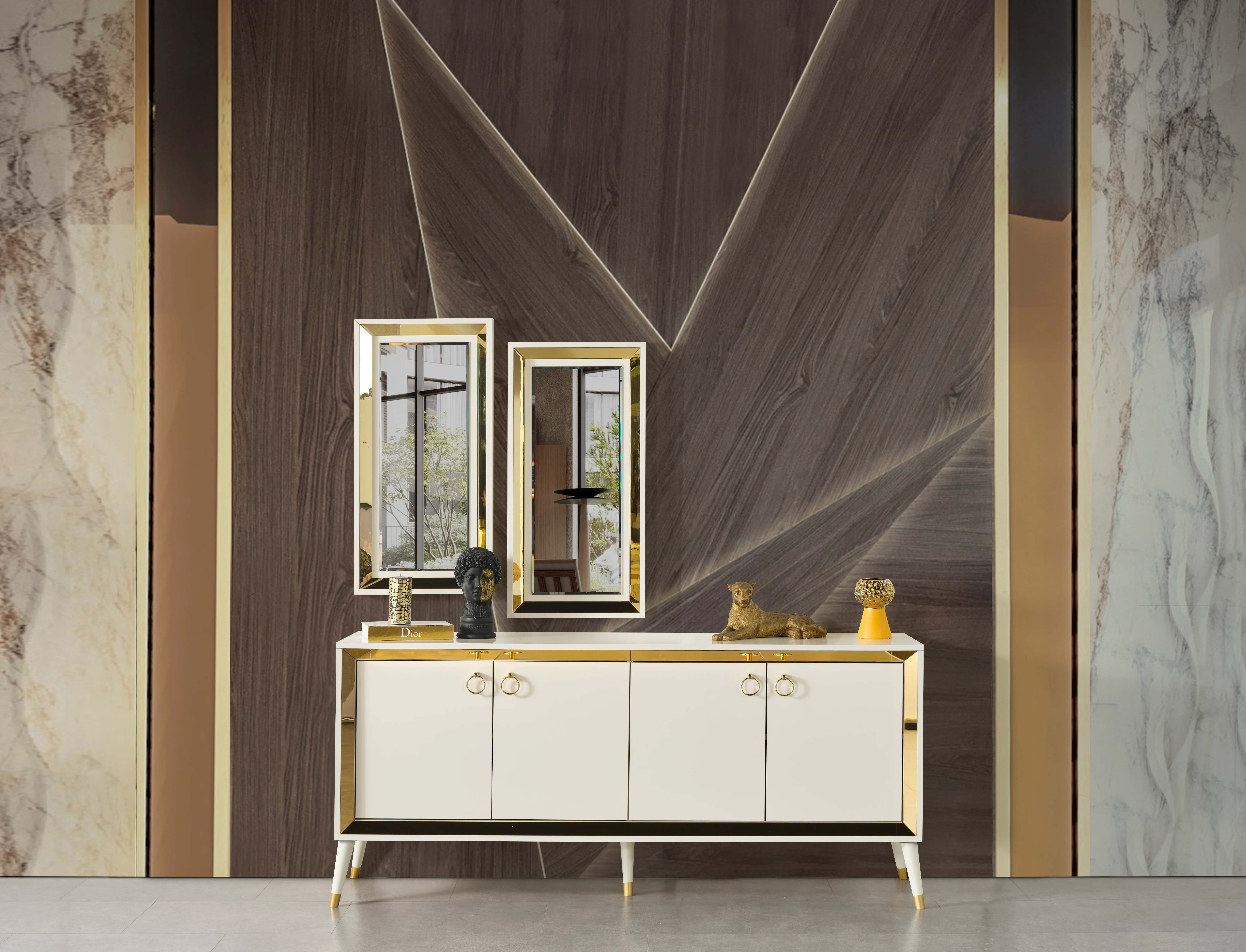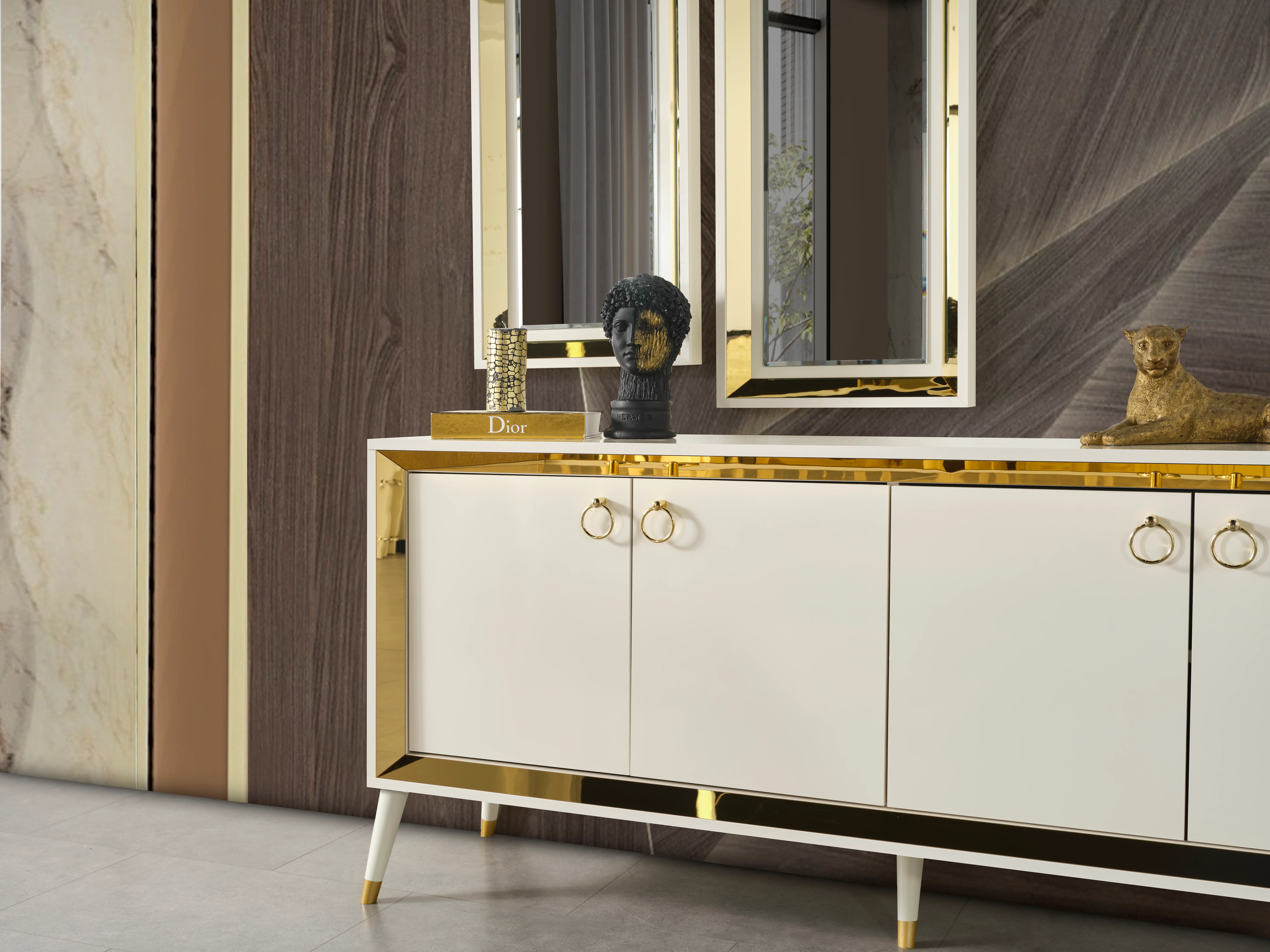 Krem tonlarının huzur veren dinginliğini lineer kapak detaylarıyla birleştiren bu genç odası takımı, hem estetik hem de düzenli bir yaşam alanı sunuyor. Gardırop kapaklarındaki geniş ayna panelleri odaya derinlik katarken, dikey kapitone işçiliğine sahip yatak başlığı konforu şıklıkla buluşturuyor. Gold metal detaylı çalışma masası ve modüler raf ünitesi, tasarımı modern ve dinamik bir dokunuşla tamamlıyor.