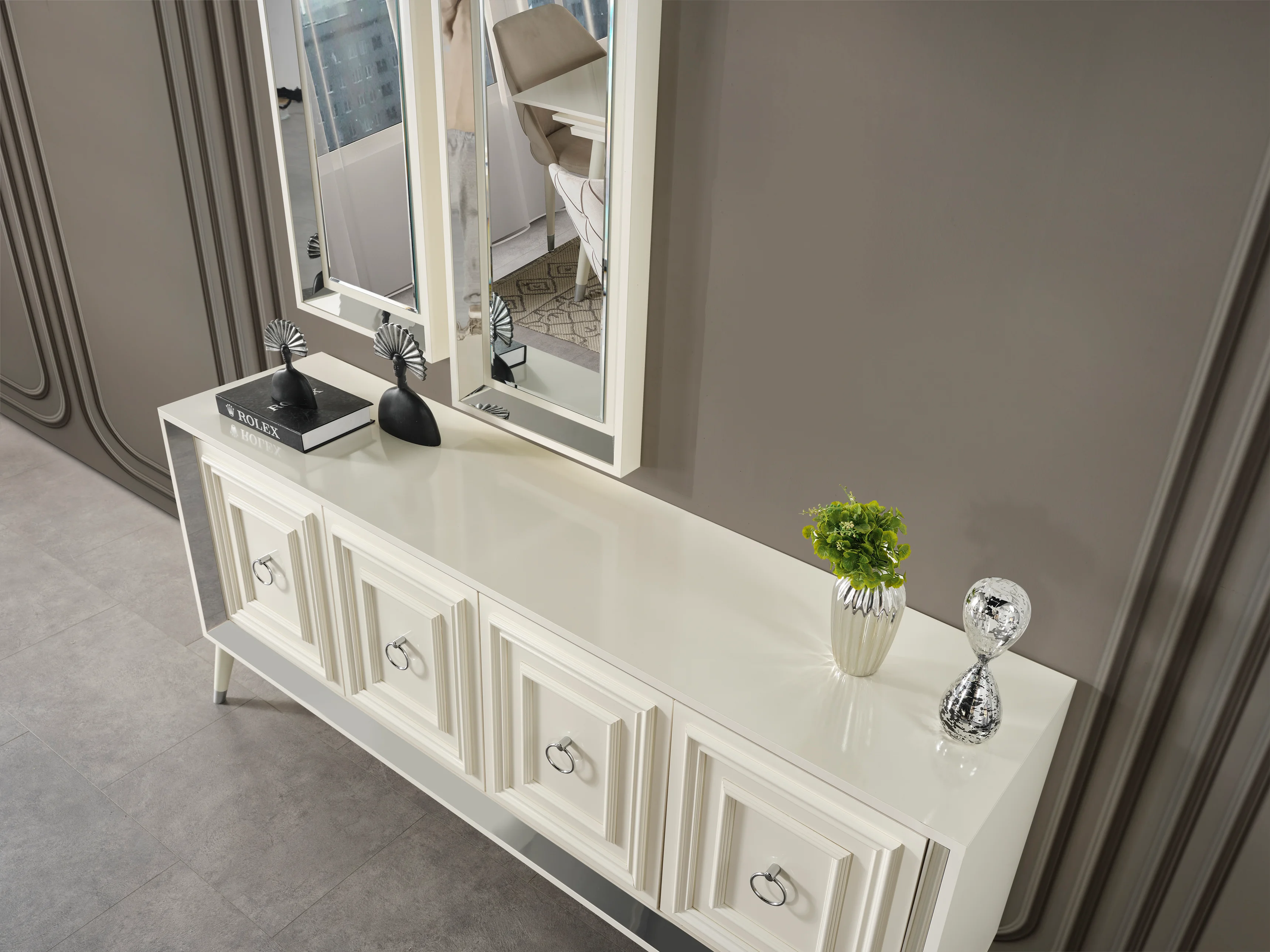Beyazın saf enerjisini huzurlu vizon tonlarıyla buluşturan bu set, modern yaşamın sadeliğini odanıza taşıyor. Gardırop ve şifonyerdeki çizgisel kapak dokuları aynalı yüzeylerle derinlik kazanırken, dikey kapitone yatak başlığı konforlu bir estetik sunuyor. Fonksiyonel çalışma masası ve modüler raflarıyla hem düzenli hem de stil sahibi bir yaşam alanı vadediyor.